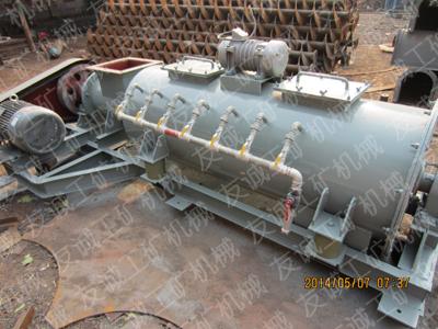 單軸粉塵加濕攪拌機(jī)主要用于電力,冶金等行業(yè)的多管除塵器,電除塵器,重力除塵器及其它親水性好,粘性較差物料的排放處理、通過(guò)本機(jī)的攪拌加濕,使干料變?yōu)榫鶆蚨睗竦奈锪希?避免了卸料和運(yùn)輸過(guò)程中產(chǎn)生的二次揚(yáng)塵問(wèn)題、本設(shè)備安裝在灰?guī)?,灰斗下部,由葉輪料機(jī)把干灰均勻地輸入到機(jī)內(nèi),通過(guò)旋轉(zhuǎn)的帶螺旋葉片的棘輪把干粉灰攪拌打散,同時(shí)加入適量的水進(jìn)行強(qiáng)制混合,并將達(dá)到預(yù)訂濕度的混合料推向出料口排出,達(dá)到加濕排放、本設(shè)備由均勻供料,葉片輸料加水混合擊打加濕構(gòu)成,該設(shè)備結(jié)構(gòu)簡(jiǎn)單,密封良好,處理量大,攪拌扭矩大等特點(diǎn)。