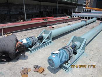 | 37米螺旋輸送機(jī)制作完成 | 管式螺旋輸送機(jī)試車 | |