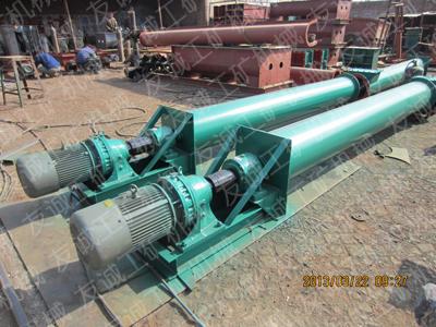 管式螺旋輸送機(jī)一般情況下用于傾斜角度的輸送,管式螺旋輸送機(jī)是利用旋轉(zhuǎn)的螺旋將被輸送的物料沿固定的機(jī)殼內(nèi)推移而進(jìn)行輸送工作,頭部及尾部軸承移 殼體外,吊軸承采用滑動軸承設(shè)有防塵密封裝置,軸瓦一般采用粉末冶金,輸送水泥采用毛氈軸瓦,吊軸和螺旋軸采用滑塊連接。