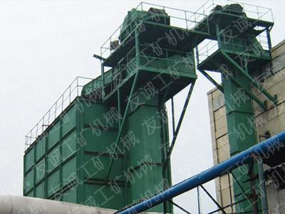 斗鏈裝置由料斗和套筒滾子鏈組成。分單鏈和雙鏈兩種布置型式,頭部驅動裝置設置逆止器,逆止可靠。卸料口裝有防回橡膠板,中間節(jié)裝有軌道以防止牽引鏈條在工作中擺動。設備的進出料口、提升高度均可根據現場工藝要求靈活布置。